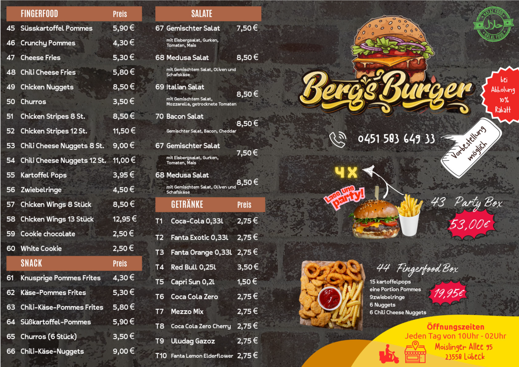 Montag-Sonntag 10:00 - 02:00 Uhr